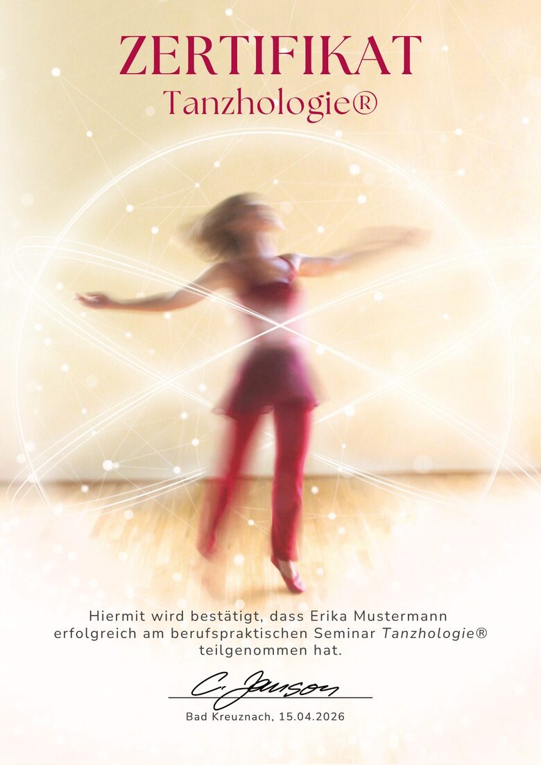 Das ursprünglich intuitiv entwickelte Konzept wurde durch die Arbeit von Dr. Kappert (Tanz zwischen Kunst und Therapie) inspiriert und durch mein Studium in Dance Science (Uni Bern, Insigne cum laude) und Tanzmedizin (ta.med -Zertifikat mit Auszeichnung) wissenschaftlich untermauert.